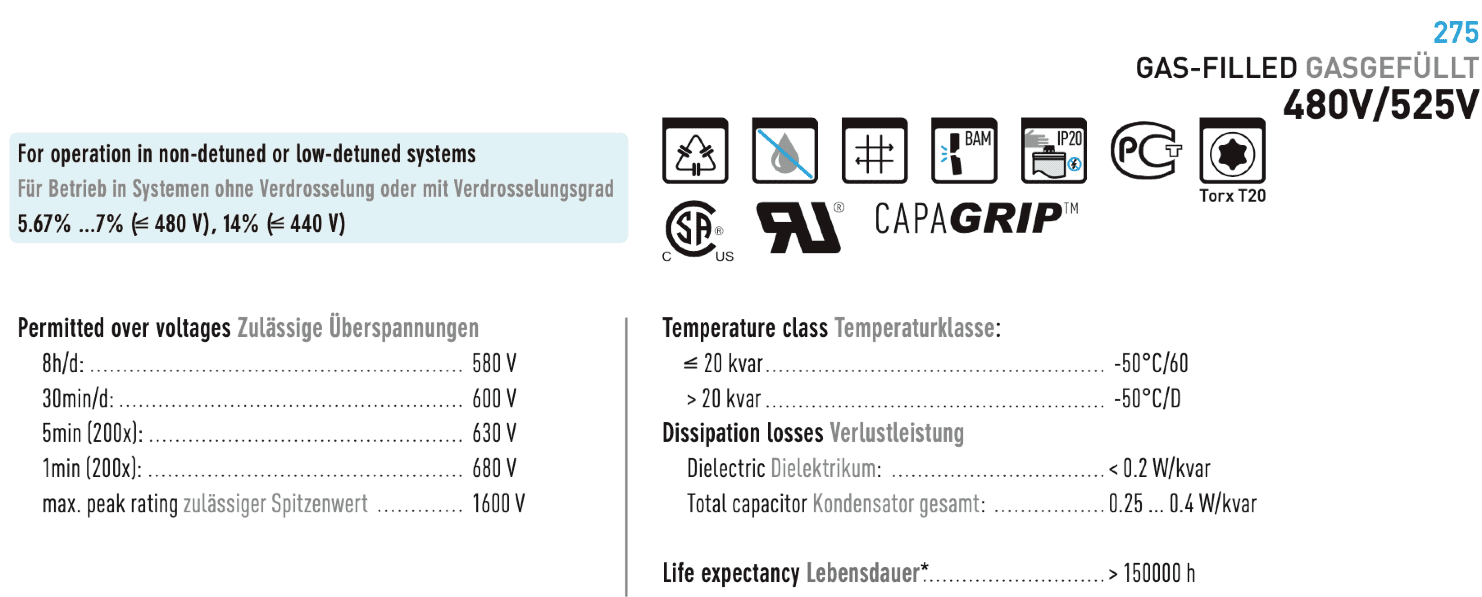 - Ratings: 5/7.5/10/12.5/15/20/25/50/Kvar